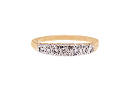 A traditional carved graduated diamond seven stone ring with very bright diamonds.