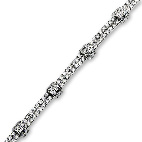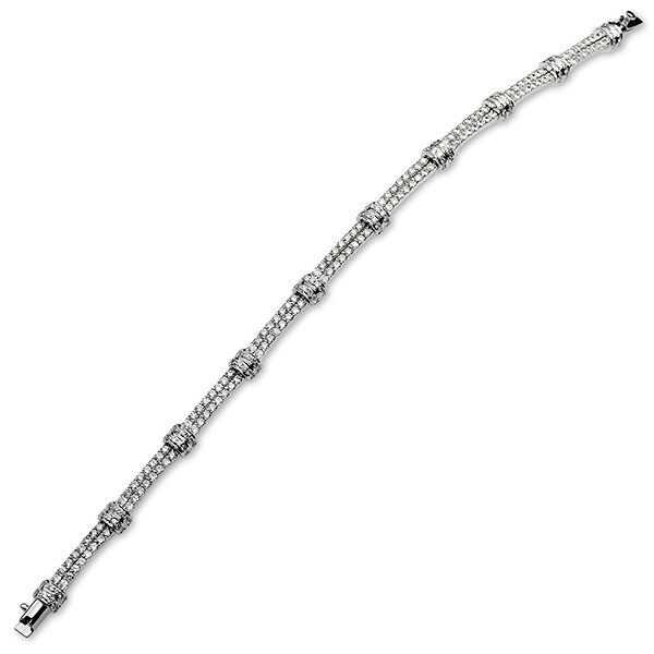 With two rows of sparkling diamonds and ten curved sections evenly spaced, set in the opposite direction, so as to reflect light in every direction. The quality of the finish is second to none, this breath-taking diamond bracelet will make you feel like a princess every time you wear it.