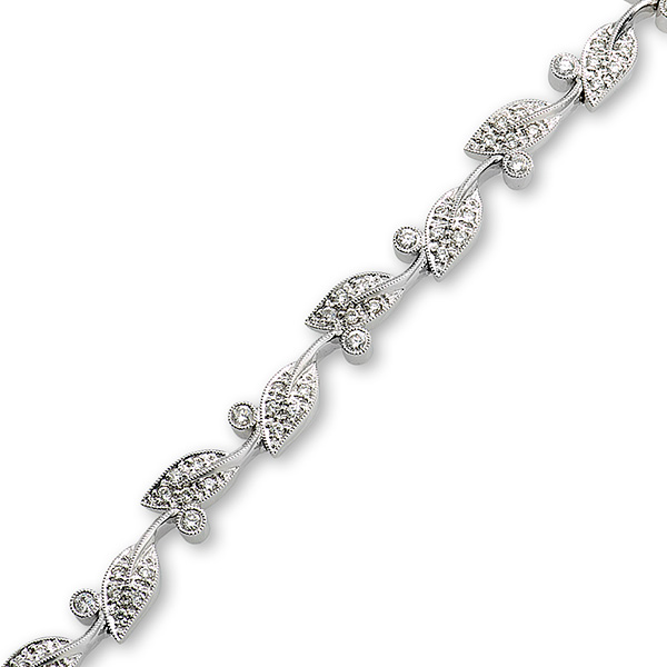 Inspired by nature, this intricate leaf design bracelet consisting of six round brilliant cut pave set diamonds to each section, and crafted in 18ct white gold, would make a perfect addition to any evening dress. A gorgeous bracelet that will make you feel like a princess every time you wear it.