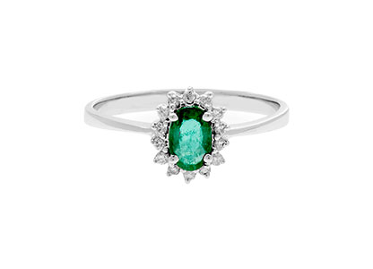 A beautiful oval emerald and diamond cluster ring. This luxurious 18ct white gold ring is elegant and intricately crafted to the highest standard, to create a classic smart and sophisticated style that she will always cherish.