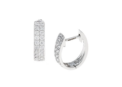 Dramatic and eye catching, these stunning 4mm wide huggie hoop earrings are crafted in the pursuit of perfection. With a total of forty round brilliant cut diamonds set into two parallel rows, contrasting perfectly with the plain highly polished finish of the 18ct white gold. Made to the highest standard, using the finest materials and jewellery making skills to create a unique and personal item to be treasured.