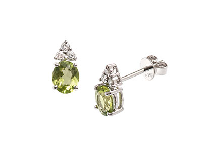 18ct White Gold Diamond & Oval Peridot Stud Earrings Esa00047