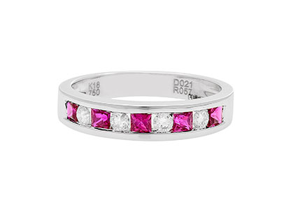 18ct White Gold Diamond & Ruby Half Eternity Ring Ra00391