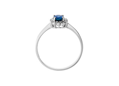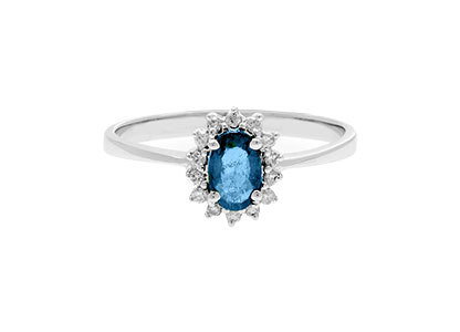 A beautiful, oval blue sapphire and diamond cluster ring. This luxurious 18ct white gold ring is elegant and intricately crafted to the highest standard, to create a classic smart and sophisticated style that she will always cherish.