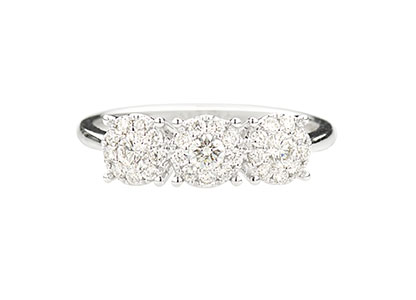 This beautiful 18ct white gold diamond three cluster ring has an elegance that makes it extra special.
