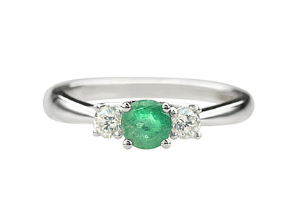 One 5mm round emerald – associated qualities, happiness, and fertility.