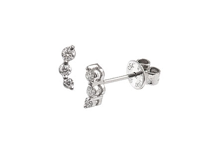 A beautiful trilogy of graduated round white brilliant cut diamonds, crafted to fit the curvature of the ear lobe. A smart sophisticated design that is suitable for both evening and every day wear. A petite yet vibrant display of sparkling fire.