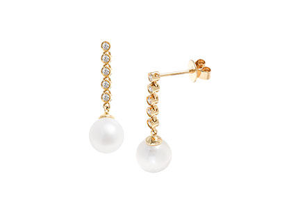 18ct Yellow Gold Pearl & Diamond Drop Earrings Eda00078