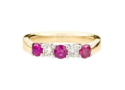 18ct Yellow Gold Ruby & Diamond Five Stone Ring Ra00343