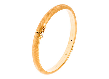 Bangles are a great way to make a statement with your jewellery but not always the same one. whether it’s this 9ct-Gold Matt-Finish Oval Bangle or a plain design or a complicated pattern, bangles are in vouge and bang on trend.