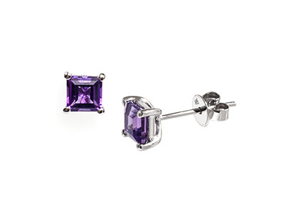 These gorgeous rich purple amethyst earrings, are set into a classic 9ct white gold square four claw setting.