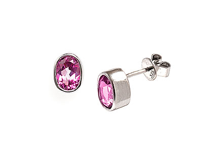 These gorgeous, rich pink topaz earrings, are set into a classic 9ct white gold rub over setting, with a smooth and tactile feel.