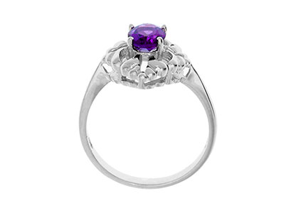 This gorgeous, elaborately styled dress ring, has a tantalizing glamorous look with sleek, creative curves and smooth contours. Crafted in 9ct white gold and set with a single oval brilliant cut amethyst that will add a touch of colour to your outfit and look great for both day or evening wear.