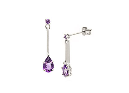9ct White Gold & Amethyst Drop Earrings Ed00053
