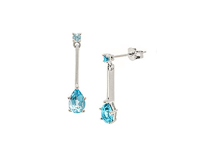 Gracefully suspended from a single round sky blue topaz stud fitting, is a thin feminine sleek and stylish white gold stick design, leading to a beautiful teardrop sky blue topaz, a creative yet un-complicated style that will add a touch of colour to your outfit and look great, for both day or evening wear.