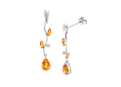9ct White Gold Citrine & Diamond Drop Earrings Ed00675