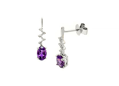 9ct White Gold Diamond & Amethyst Drop Earrings Ed00629