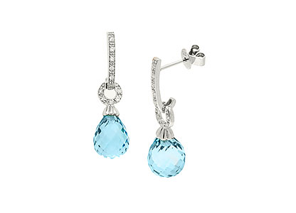 9ct White Gold Diamond & Blue Topaz Drop Earrings Ed00607