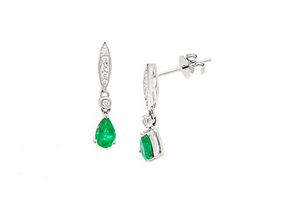 Two 6mm x 4mm pear shape emeralds – associated qualities, happiness and fertility.
