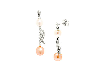 9ct White Gold Diamond & Pearl Drop Earrings Ed00670