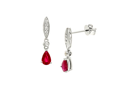 9ct White Gold Diamond & Ruby Drop Earrings Ed00757