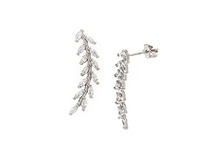 9ct White Gold Leaf Branch Cubic Zirconia Drop Earrings Ed00800