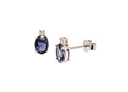 9ct White Gold Oval Iolite & Diamond Stud Earrings Es00065