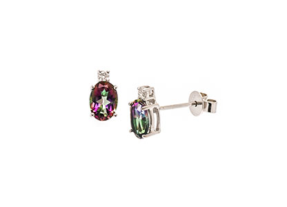 9ct White Gold Oval Mystic Topaz & Diamond Stud Earrings Es00061