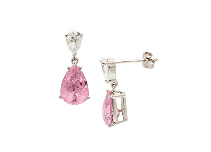 9ct White Gold Pink & White Cubic Zirconia Drop Earrings Ed00201
