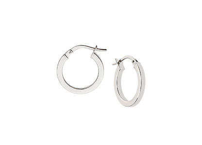 These contemporary 9 carat white gold round hoop earrings are beautifully made of polished square tubes with four flat edges to create a timeless classic that will never date.