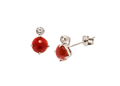 These desirable 9ct white gold stud earrings are elegant and lovingly crafted. Claw set with a beautiful rich red coral, crowned with a single round white brilliant cut sparkling cubic zirconia in a rub over setting. These beautiful earrings will make a great addition to your collection.