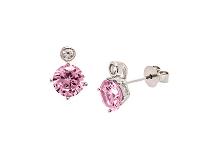 These dazzling desirable 9ct white gold stud earrings are elegant and lovingly crafted. Claw set with a beautiful sparkling 6mm pink cubic zirconia, crowned in a rub over setting with a smaller round white brilliant cut sparkling cubic zirconia. These beautiful earrings will make a great addition to your collection.