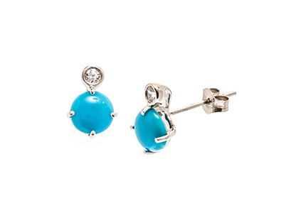 These desirable 9ct white gold stud earrings are elegant and lovingly crafted. Claw set with a beautiful 6mm sky blue turquoise, crowned with a single round white brilliant cut sparkling cubic zirconia in a rub over setting.  These beautiful earrings will make a great addition to your collection.