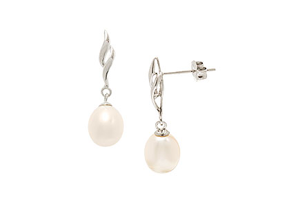 With two sleek curves and smooth contours, these graceful 9ct white gold and snowy white cultured pearl drop earrings, have a beautiful soft refined look that will always be fashionable, combining contemporary design with traditional elegance.