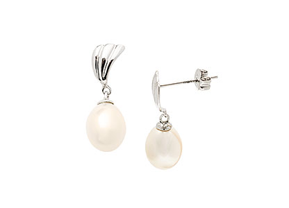 The gorgeous curves of these highly polished 9ct white gold shell design drop earrings, are perfectly accentuated with the natural elegance and beauty of the smooth white cultured pearls.