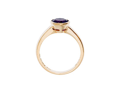 This gorgeous 9 carat yellow gold amethyst dress ring, from the Bonita Jewels collection, is certain to win you plenty of compliments. The perfect vibrant regal tones of the rich purple amethyst, are accentuated by the simplicity of this classic design.