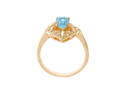 This gorgeous, elaborately styled dress ring, has a tantalising glamorous look with sleek, creative curves and smooth contours. Crafted in 9ct yellow gold and set with a single oval brilliant cut blue topaz that will add a touch of colour to your outfit and look great for both day or evening wear.