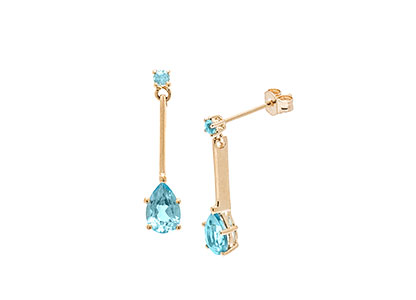 Gracefully suspended from a single round sky blue topaz stud fitting, is a thin feminine sleek and stylish gold stick design, leading to a beautiful teardrop sky blue topaz. A creative yet un-complicated style that will add a touch of colour to your outfit and look great, for both day or evening wear.