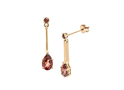 Gracefully suspended from a single round red garnet stud fitting, is a thin feminine sleek and stylish yellow gold stick design, leading to a beautiful teardrop Mozambique garnet. A creative yet un-complicated style that will add a touch of colour to your outfit and look great, for both day or evening wear.