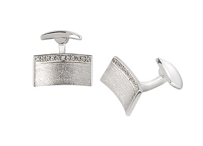 Curved Sterling Silver Cufflinks with sparkling stones set against a brushed matt background—an excellent gift in a luxurious presentation box.