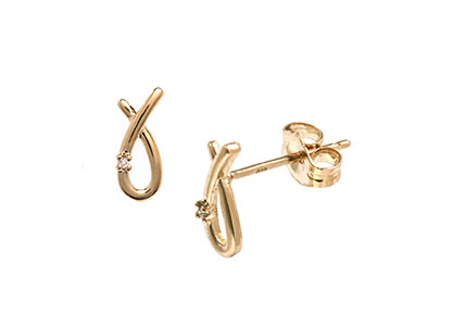 Diamond 9ct Gold Ribbon Stud Earrings Es00705