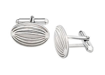 Oval shaped cufflinks, slightly domed and inlaid with white cloisonné enamel, made in 925 real sterling silver with a polished anti tarnish rhodium finish.