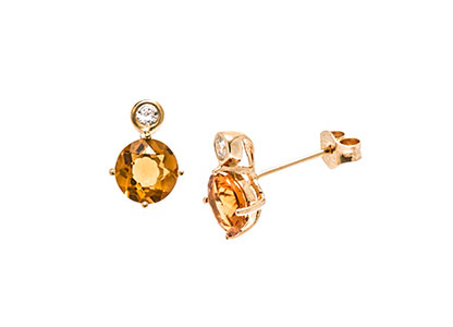 Gold Citrine & CZ Stud-Earrings ES00103.