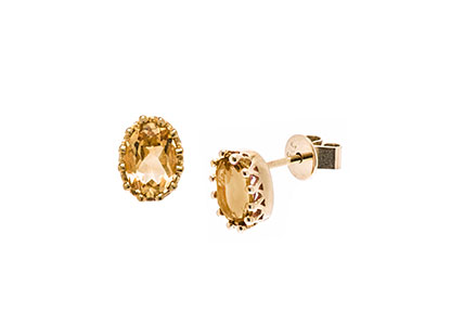 Gold Crown Oval-Citrine Stud-Earring ES00154.