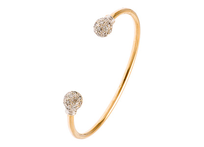 This heavy solid 9ct yellow gold torc bangle is designed to wrap elegantly around the wrist. Each ball is encrusted with cubic zirconia’s and white rhodium plated for a sparkling finishing touch.