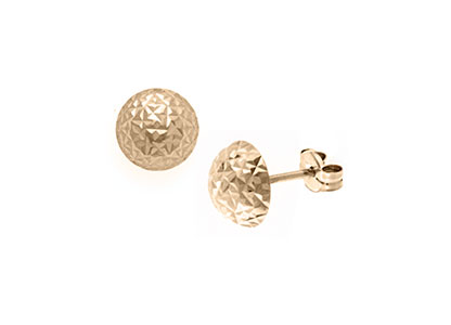 These vibrant sparkling 9ct yellow gold half ball or domed stud earrings have a crazy diamond cut pattern. So called because the pattern is cut at every possible angle, making sure to catch and reflect light in every direction to create a dazzling display of sparkling fire as you move.