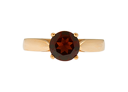 Featuring one 6.5mm round brilliant cut Mozambique Garnet – associated qualities, constancy and loyalty.