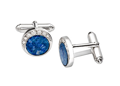 Add a touch of class and sparkle to your day or evening with these beautiful unisex blue lapis lazuli cufflinks. Complemented by seven pave set, round, graduating white, brilliant cut cubic zirconia.