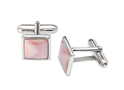 Square shaped unisex cufflinks, inlaid with a shimmering pink mother of pearl. Made in 925 real silver with highly polished anti tarnish rhodium finish.