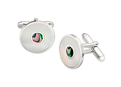 REAL STERLING SILVER MOTHER OF PEARL & ABALONE SHELL CUFFLINKS CK00207.